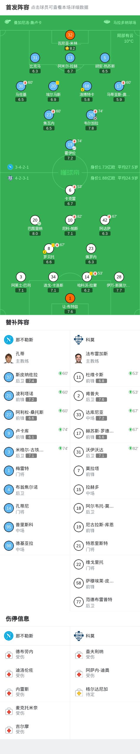 第71分鐘,科莫開出任意球,杜維卡斯頭球攻門高出