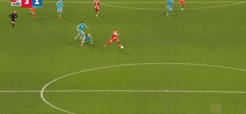 第45+2分鐘,凱恩送助攻,迪亞斯破門(mén),拜仁3-1霍芬海姆