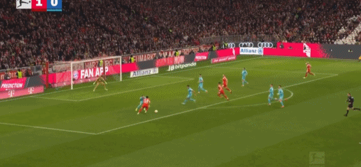 第20分鐘,阿克波古馬送紅點(diǎn)套餐,凱恩命中,拜仁1-0霍芬海姆