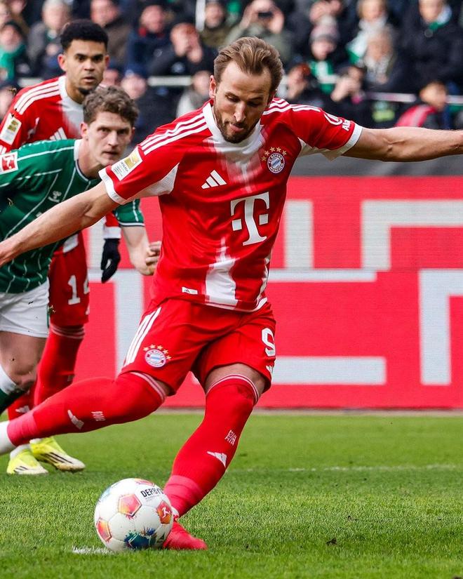 此役客場對陣云達(dá)不萊梅,凱恩在比賽第22分鐘主罰點球破門,第25分鐘再入一球,上演梅開二度。